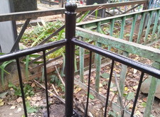 В первую очередь займемся оградой. Обожжём всю краску на ограде.