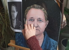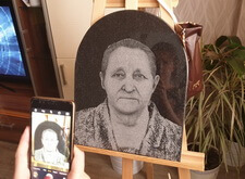 Первый этап работы – компьютерная обработка. Мы заменили одежду усопшей; удалили с головы платок, открыв полностью голову покойной; а также провели детальную доработку её лица: удалили большое количество морщин, сохранив черты.