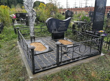 Далее покрасили оградку, насыпали в цветники кору, сняли защитную плёнку с креста. В таком виде место захоронения было представлено клиенту.