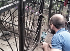 Здесь видно насколько хорошо зачищена ограда. Как обычно чистим до металла.